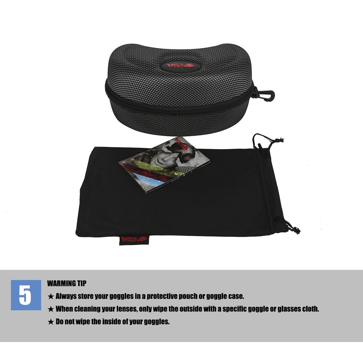 ★★ Dual-PC LENS,REVO MIRROR GLASS with UV400 PROTECTION and ANTI-FOG:Embedded premium anti-fog layer in the inner lens disperses water molecules across the surface of the lens,restricting moisture build up that can impede your crystal clear view of the terrain ahead.Double Lens Thermal Barrier:The unique double lens design creates a thermal barrier,while providing exceptional optics and a superior seal.